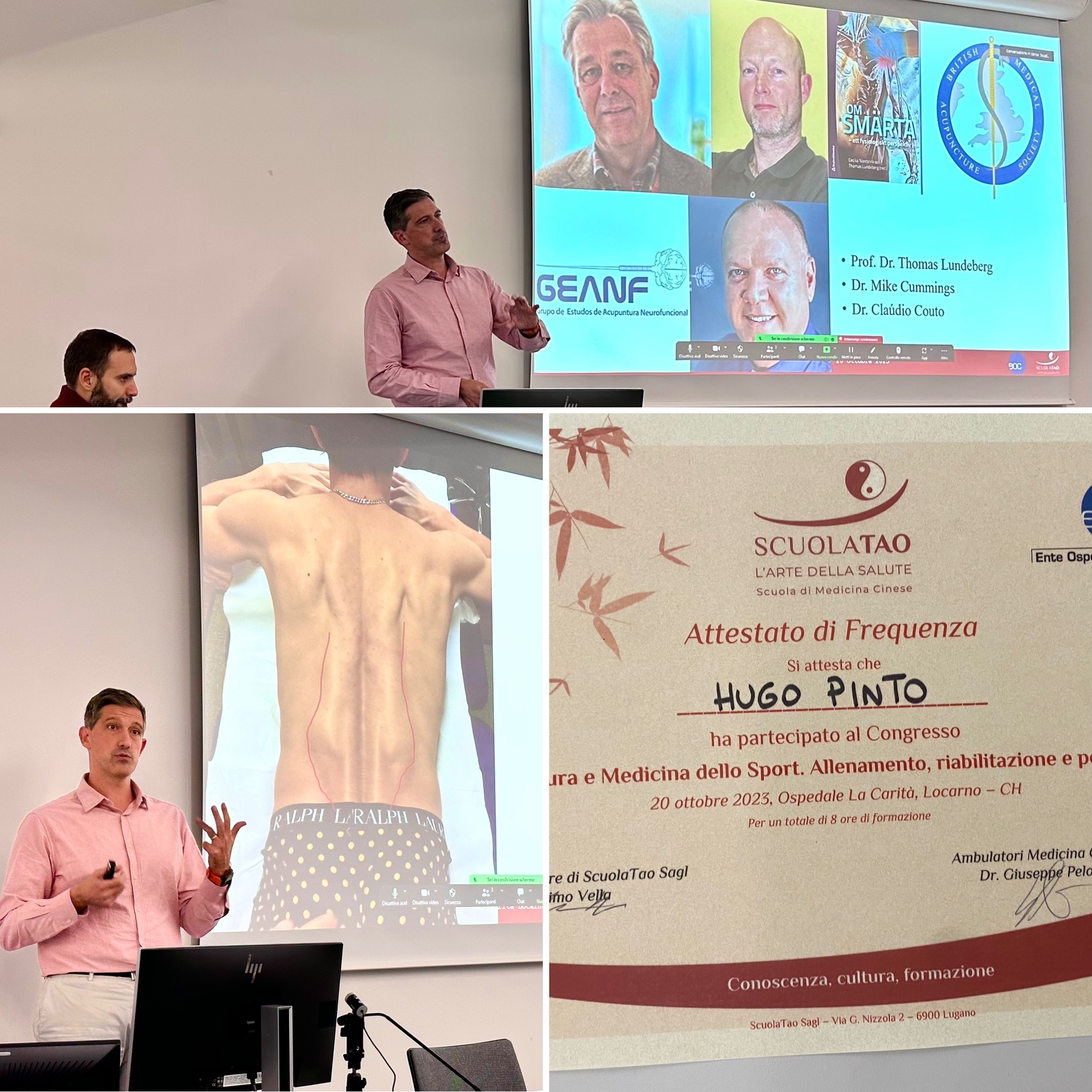 Em nome do Dr. Hugo Pinto, o nosso muito obrigado ao Dr. Mike Cummings pelo convite e ao acupunctor Massimo Vella e à ScuolaTao pelo convite e pela hospitalidade.