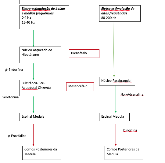 Esta Eletro-estimulação permite com as várias frequências ao nosso dispor ativar os nossos Sistemas de controlo da dor, assim como estimular a própria cicatrizarão dos nossos tecidos.
